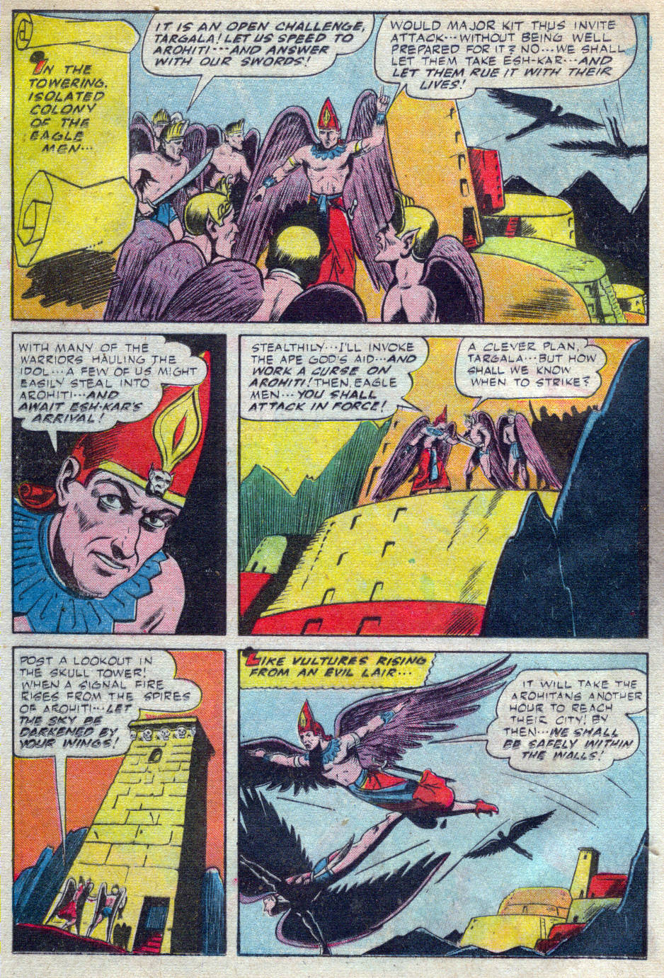 Cave Girls' parents were murdered by savages in the jungle where they'd been living for several years while she was still a toddler. The infant then known as “Carol”, was carried off by an eagle, who took her far away beyond the mountains natives called The Barrier of the Moon, and deposited her in The Dawn Lands (where things were fairly primordial near the beginning of her career). Instead of feeding Carol to its young, the bird left her to be raised by Kattu, the wolf.